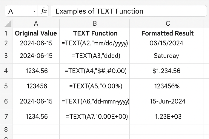 =TEXT(1234567, "#,##0") → 1,234,567